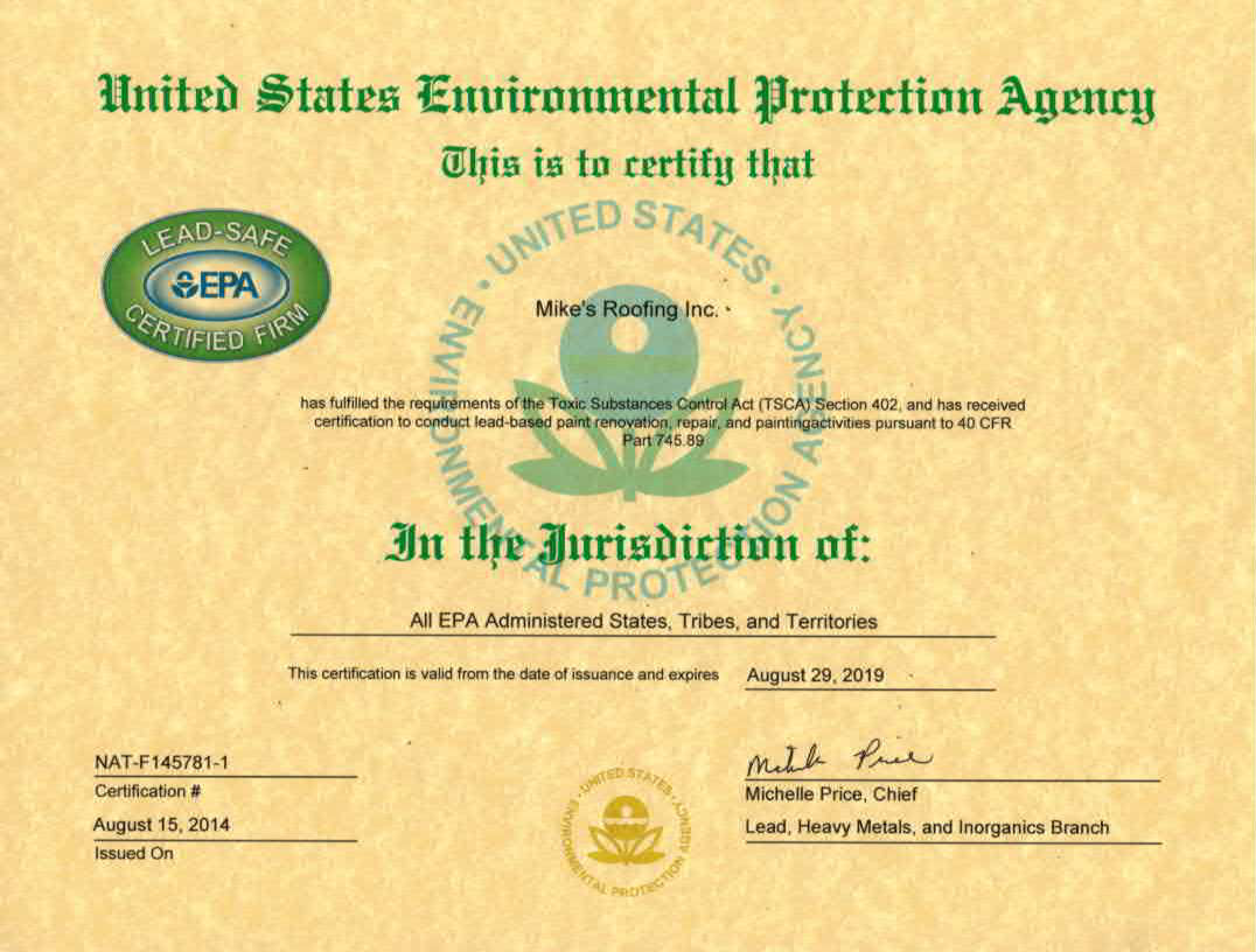 Mike’s Roofing Inc is Lead-Safe Certified Mike's Roofing Inc. Posted on August 27, 2014 by Mediap1837749June 15, 2025
